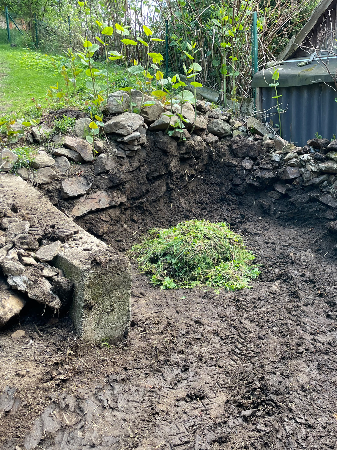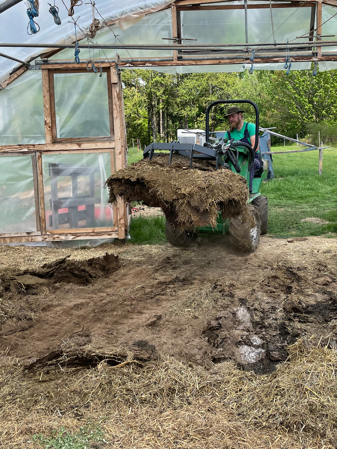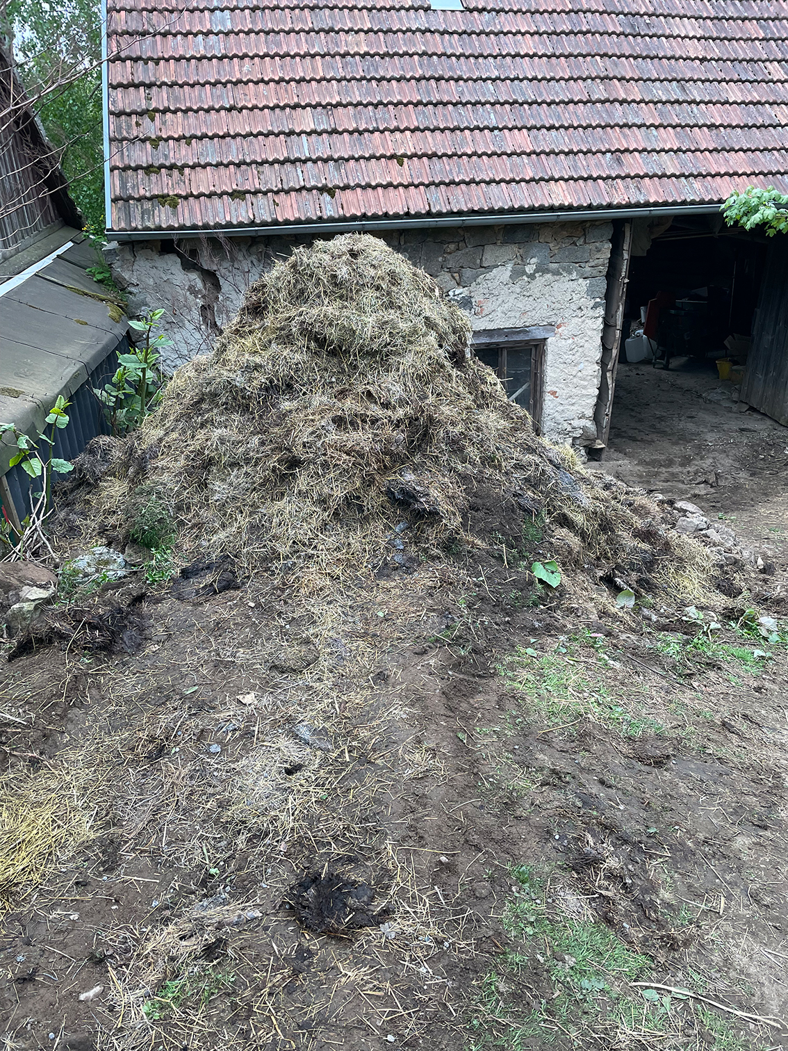 Heute habe ich den fertigen Misthaufen ausgeräumt und mit dem frischen Dünger aus dem Winterstall wieder aufgebaut.