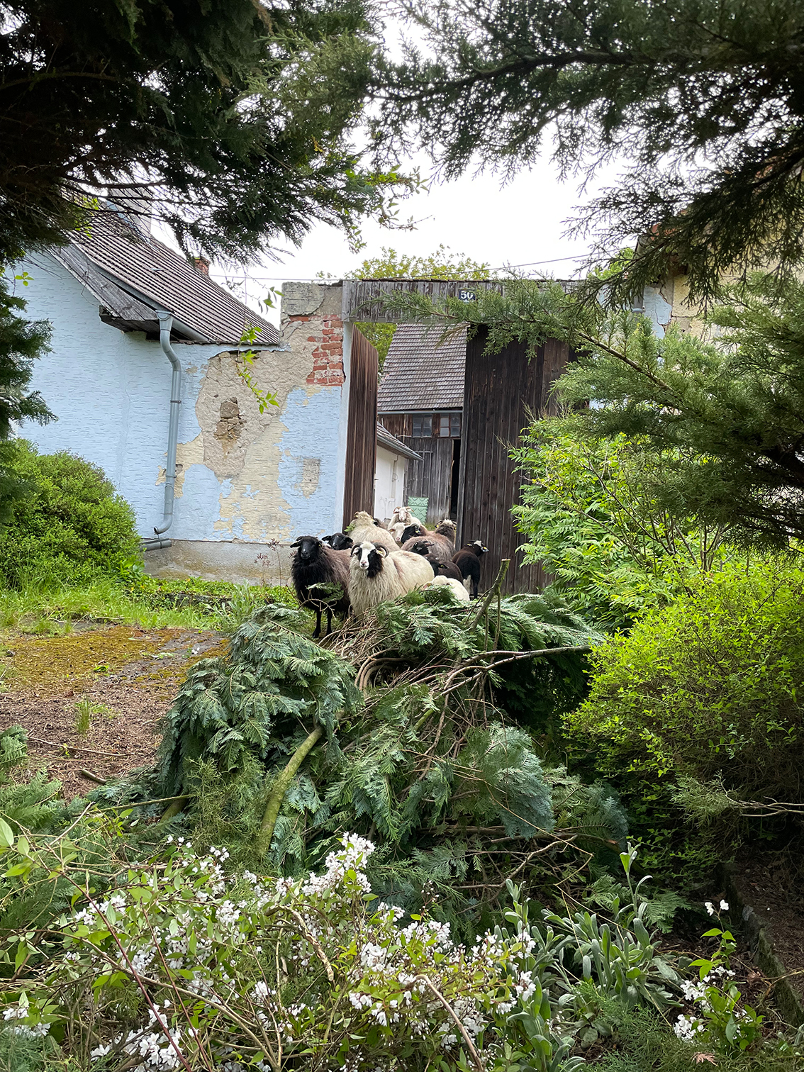 Nachdem ich jetzt Besitzer der Streuobstwiese, einem alten Haus sowie Scheune und Garage bin, durften die Lady´s das Grundstück besichtigen. Natürlich ließen sie es sich nicht nehmen, sofort mit der Gartenpflege im Eingangsbereich zu beginnen.
