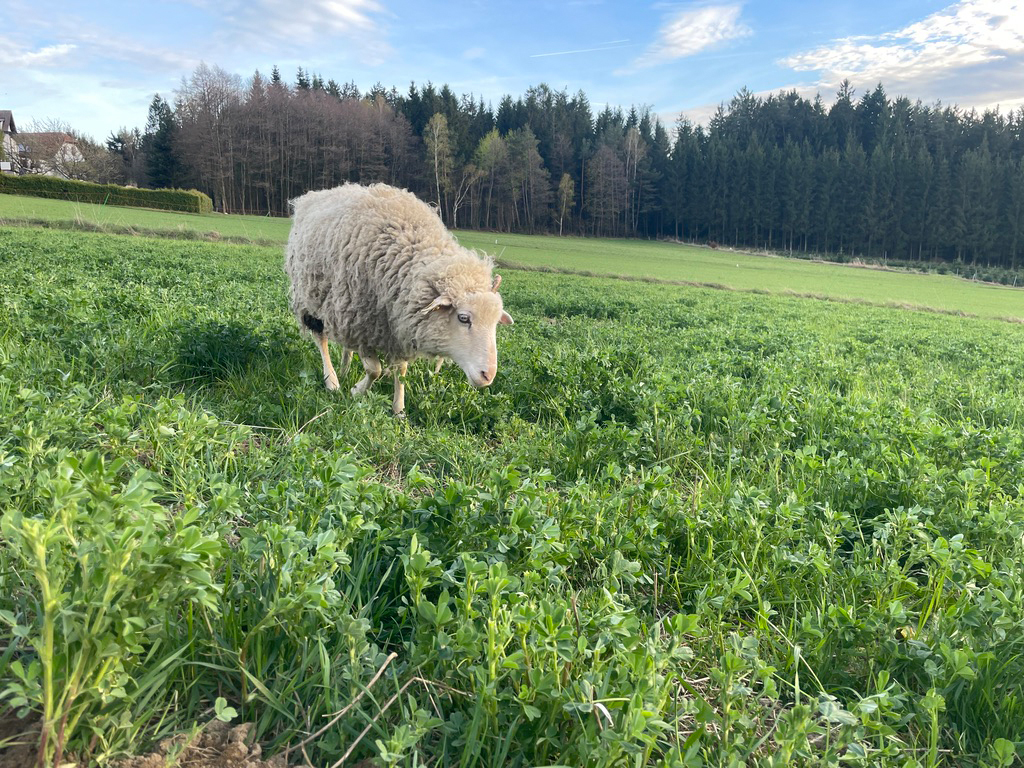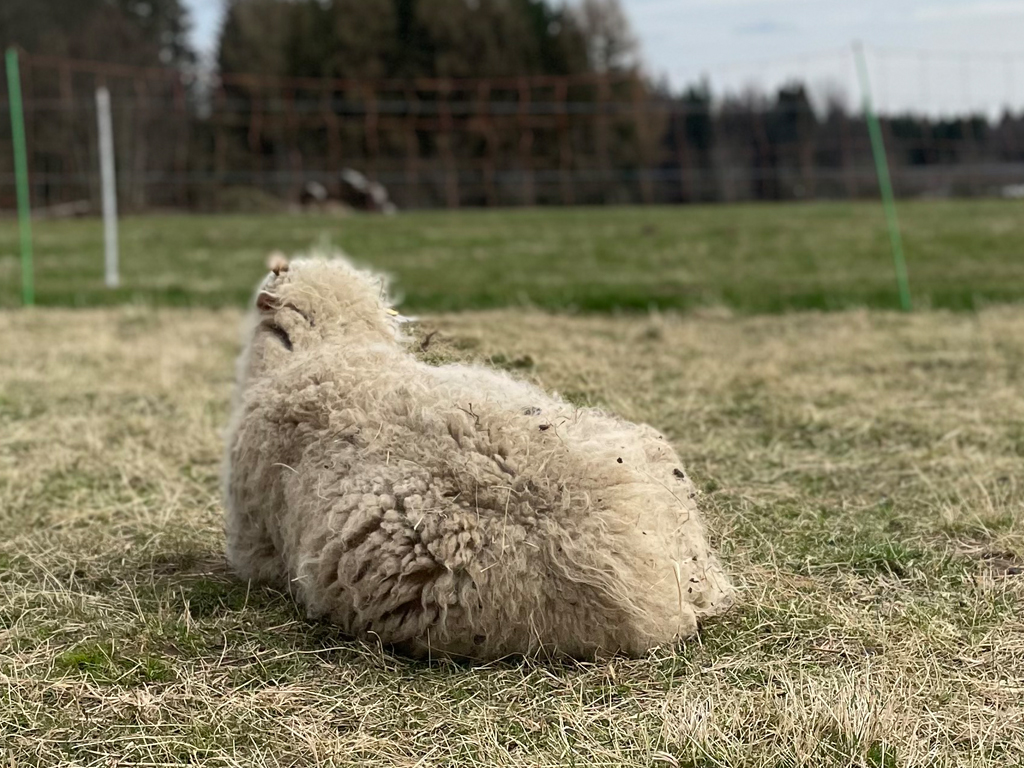Als sie zu uns auf den Hof kam, war sie schon eine ältere Dame – ruhig, gelassen und voller Geduld. Während die anderen auf der Zuchtweide waren, hat Omi auf die Lämmchen aufgepasst. Immer aufmerksam, immer da.